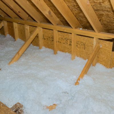 Bij geblazen materiaal wordt de ruimte tussen de spanten van het dak of de zoldervloer opgevuld met isolatiemateriaal.